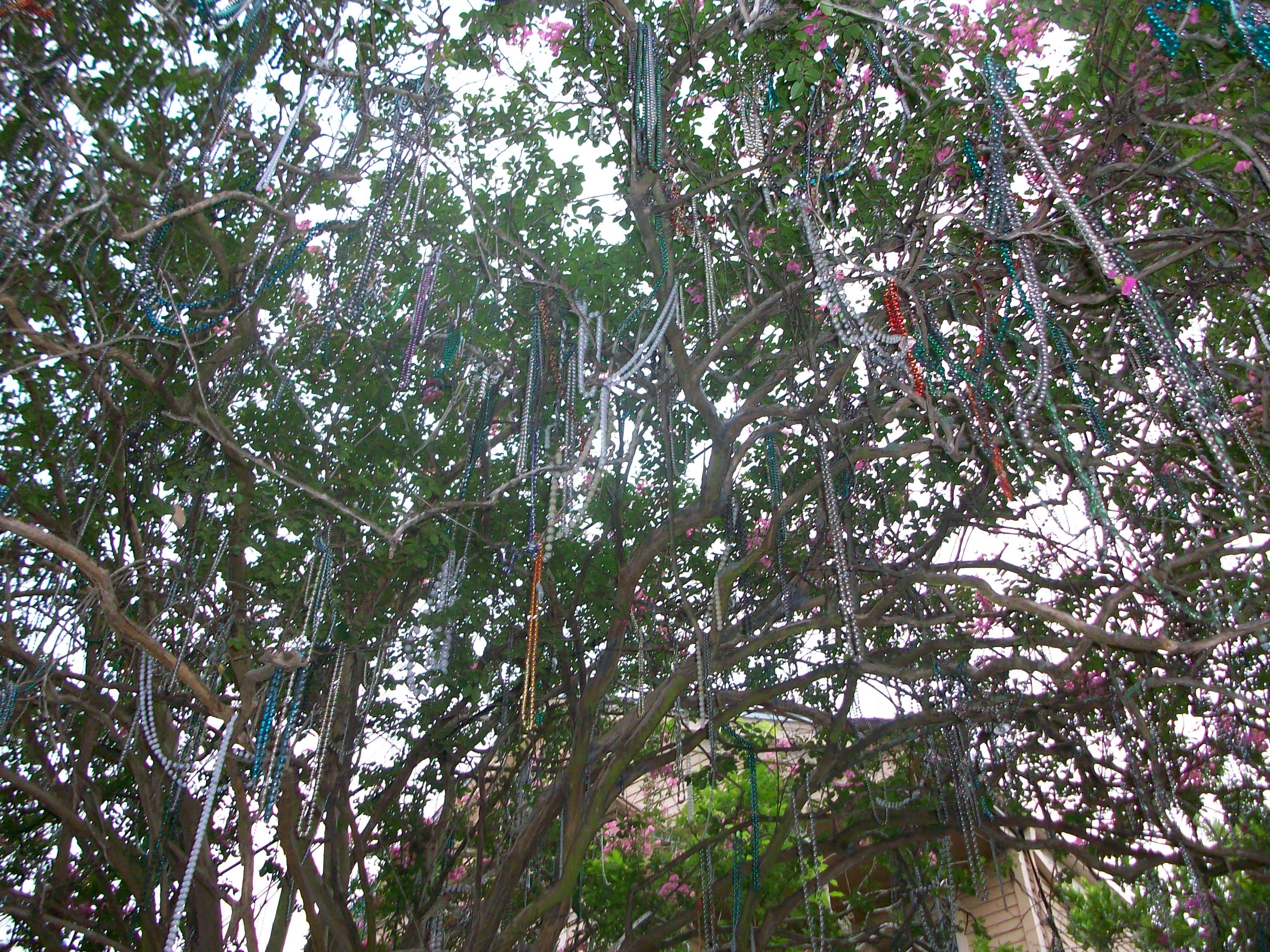 I left my dear friend S.’s house early to avoid total drenching on my bicycle and was racing home up Camp Street when I had to turn back to look more closely at this crepe myrtle tree drenched in leaves, flowers and Mardi Gras beads. Continue reading