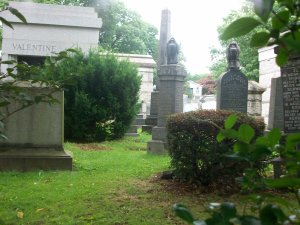 Of course this is just one way to bury the dead in Brooklyn. Cypress Hills cemetery, as seen through locked gates, shows off a much more individualized and artistic set of graves and reminded me much more of New Orleans cemeteries–they are still unique, but NOLA hardly corners the market on mourning in style. Cypress Hills has large family tombs, individual grave markers, obelisks, and more, all marking death and memory in different ways. There’s no clear and steady march, but instead an almost haphazard collection of gravesites. This seems much more human to me than the military sites. But maybe that’s just me. Maybe that’s just my attachment to a sense of individuality, a sense of the importance of art in memory and mourning. One thing I am sure of is that I’m glad I got so desperately lost today. There is so much of this place that I won’t see except by accident. Such is the way of NYC.