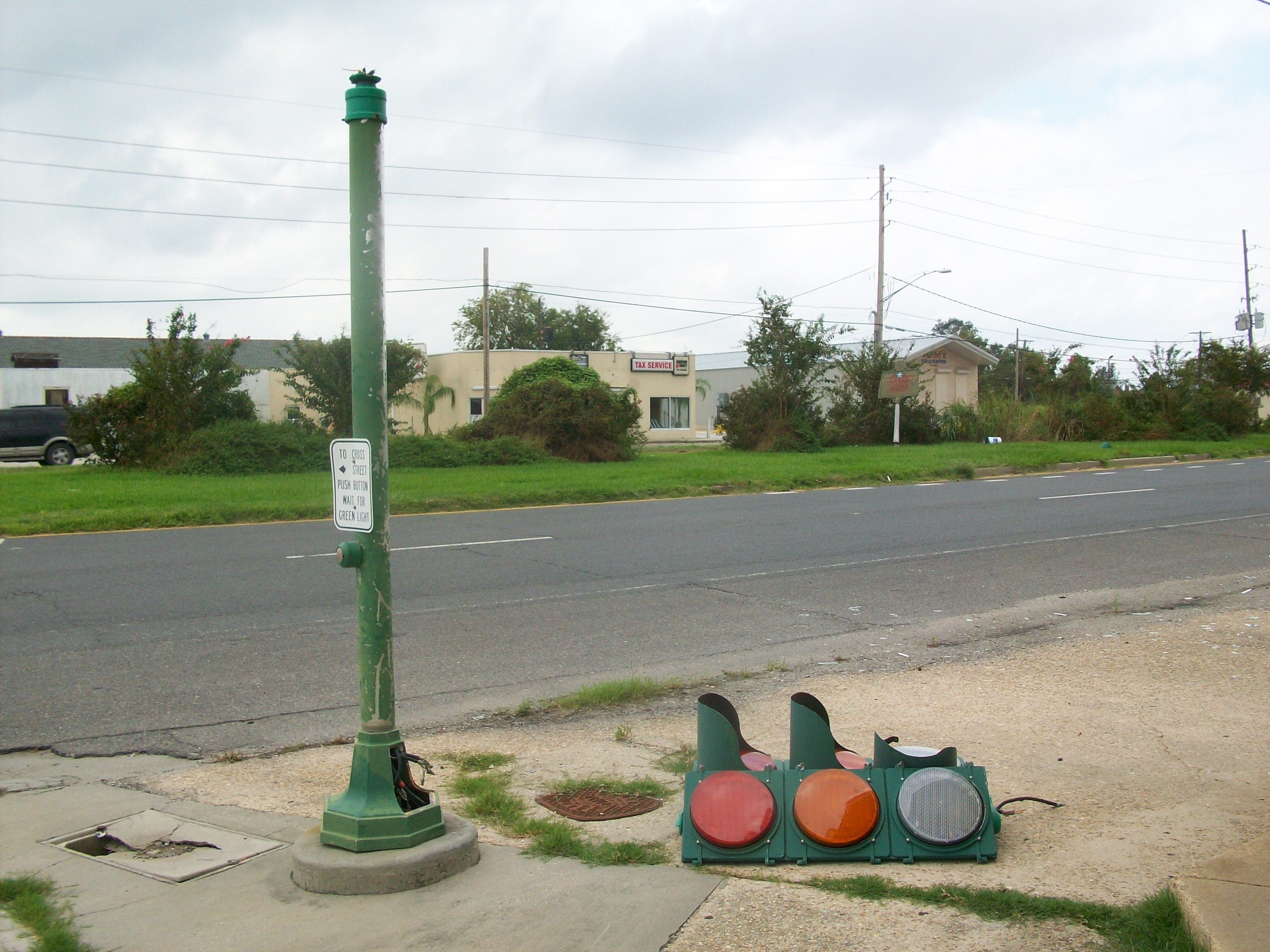 I then tooled over to the St. Bernard parish line. These parts of the city are still so damaged. If you don’t live over here, don’t have friends and family over here, you might forget that. The TV shows the Quarter, isolated parts of the levees or the river, but never this part of New Orleans. This traffic light was downed, but I don’t have any idea if this is the result of Gustav, Katrina, or just general disrepair. Regardless, the ride was a reminder that New Orleans isn’t simply “back,” no matter how much the media trumpets our progress. People still live out here, are trying to come home. It is sad to ride around here and feel like some neighborhoods have simply been written off and written out.