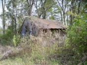 Oh, I had a most lovely day on my bicycle. I got up early and drove myself and the Surly to Lacombe and rode up the St. Tammany Trace to Abita Springs. On my way I saw lots of other folks on bikes, a few runners, some walkers, and a kid on a scooter. The sky was perfectly blue and the sun was bright, and I just pedaled and pedaled and pedaled, listening alternately to birds and music. Such a nice way to spend the day! Once I hit Abita I was positively famished, so grabbed lunch and checked out some of the goodies at the town-wide garage sale. After a quick trip through the Abita Mystery House, I headed back to the car. I was feeling pretty lethargic, but a whole bunch of water saved the day. I snapped this photo just past the Mandeville Trailhead, of a blighted tin house on the Trace. It was the sort of scene that could have been planted there, you know, for authenticity’s sake. Is that why it’s still there and not torn down yet? Because I don’t think anybody’s coming back to reclaim it. What used to happen in there, and where’d the folks who used it go? Today, in this setting, I found it beautiful rather than the eyesore it would be if it were plopped down in, say, Central City. I saw a lot of other trash today, but didn’t feel like getting off my bike to take pictures: a rusted-out foosball table, folded twin bed spring frame, an electric wheelchair, either a dishwasher or a range (it’s hard to tell from a distance when the thing’s upside down), a whole bunch of tires, a kid’s bike, etc. Oh, and lots of turtles, cypress trees, marsh grasses, old gravesites, the Dew Drop Social and Benevolent Hall (the original building from 1895!), and a zillion Mississippi pines. It’s amazing how much more you can see when you aren’t spending half your time navigating and negotiating the ground you’re rolling over. 40 miles later I was back in my car, fantasizing about the next long ride. Lovely.