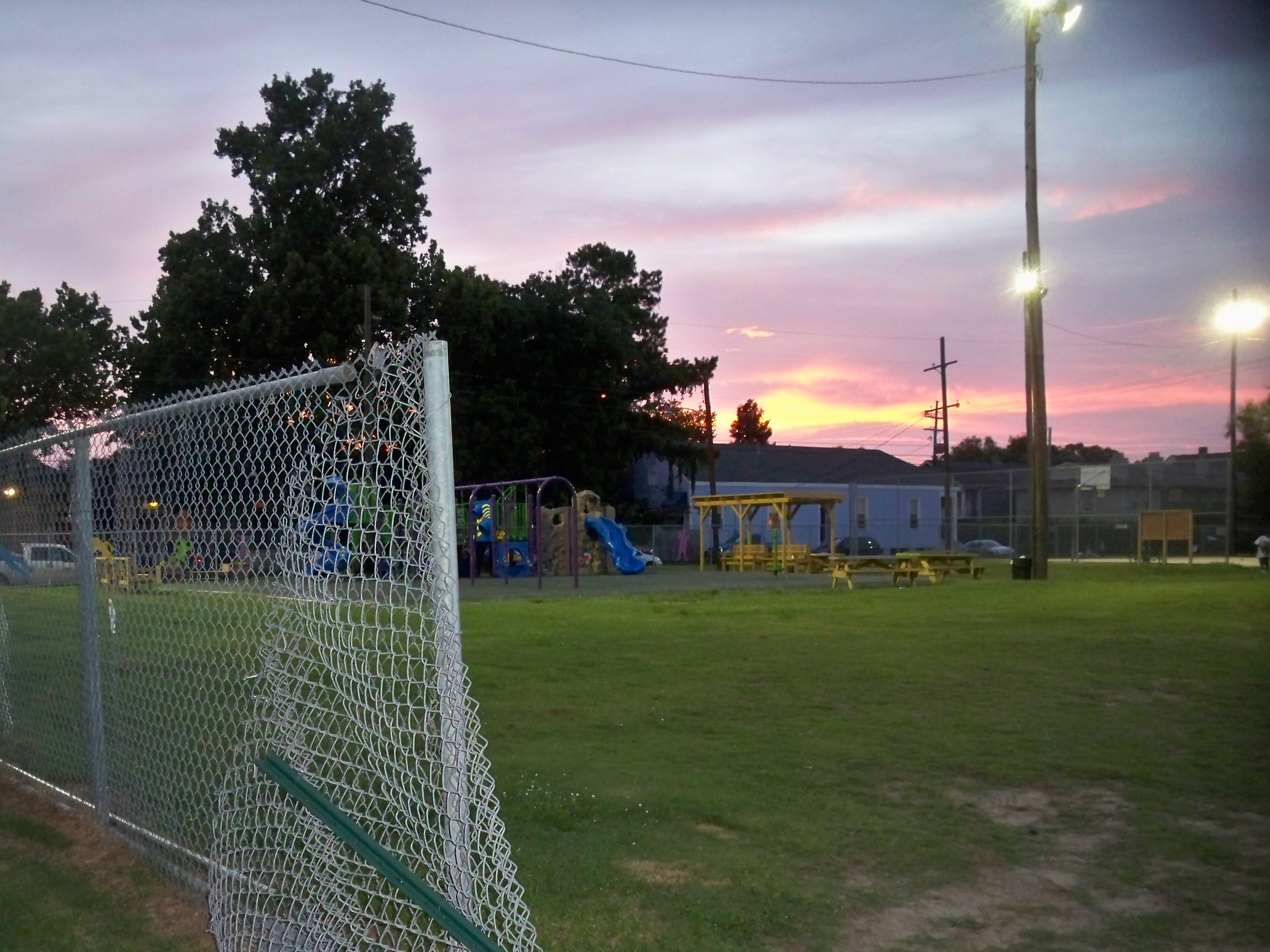 As I was getting on my bike to head home after enjoying the Laker blowout with N., I thought about what I was going to say about this picture I took tonight of new playground equipment at the park on Annunciation and Upperline. When I first moved to New Orleans this park was still filled with FEMA trailers, but that space is now a baseball diamond. The basketball courts have been redone. And now, finally, the rusted out swingset and aluminum overhang has been replaced with this colorful new equipment. Continue reading