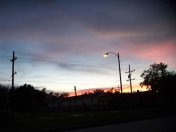 There’s no way for me to get a picture that could possibly show what the sky looked like when I left for a ride to Mid-City. As I rolled out my door, the sky was a dozen shades of pink and orange and blue. Some parts of the sky looked like pulled taffy, thick ribbons of color across the horizon. The view was eerily beautiful as it gave way to night. The ride home was a little different. Yep, it was dark out, and the street lights seem to work only intermittently. All the more reason to make sure we use headlights, especially since it’s going to be the law on Monday. Front and back lights, folks, for safety and because it’s the law. Safe riding!