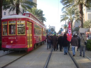 Solidarity With the People of Egypt and a Red Streetcar on Canal & Poydras