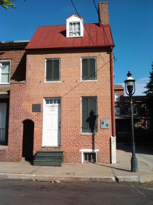 It was another beautiful sunny fall day in Baltimore, and it felt so, so good to head out on the bike to enjoy the weather and brunch and then a ride with no destination. I decided to check out the Edgar Allan Poe house, because word on the street is it may not be around long. Some historical sites don’t seem to be affected at all by pesky details like the economic crash. I mean, check out the majesty of Fort McHenry–that place is ridonkulous. I know, I know, maybe it has more national meaning than Poe’s house, but if we had any sense of equity, the Poe House would be open more than a few days a week from 12:00-3:00. Anyway, I followed my googleymap directions down Eutaw and over on Saratoga, a left on Amity. I was saying my how you doin’s to the folks sitting outside enjoying the weather, and one guy pointed down the block: it’s the house at the end with the green stairs. I’m pretty sure he’s used to sending all the white people who pass his house to the Poe House. I managed to miss the house anyway, ended up over on Poppleton (how great a name is that?), and circled back, ISO green stairs. I found it, but it was closed–d’oh! I read about the neighborhood in Poe’s time, made a mental note to come back before the place closes for the season in December, or for good. I rode over to the B&O Railroad Museum, Celebrating the Birth of American Railroading, but it was closing in a 30 minutes, and I knew I was going to need more time than that, so I circled the trains in the parking lot, made a mental note to return, and then continued on my way, down Pratt Street, through the harbor, and over to a coffee shop for a little grading. I headed back to McKeldin Square for a little time at Occupy Baltimore and a talk from Max Rameau from the Take Back the Land movement. So many good things to say, and I’m so glad I went. Coalition building, don’t succumb to the demand to settle on demands, if everyone’s a leader they can’t knock out the movement by eliminating “leaders.” Oh, and Whose land? OUR LAND! I headed back up the hill to home, a lovely end to the weekend.