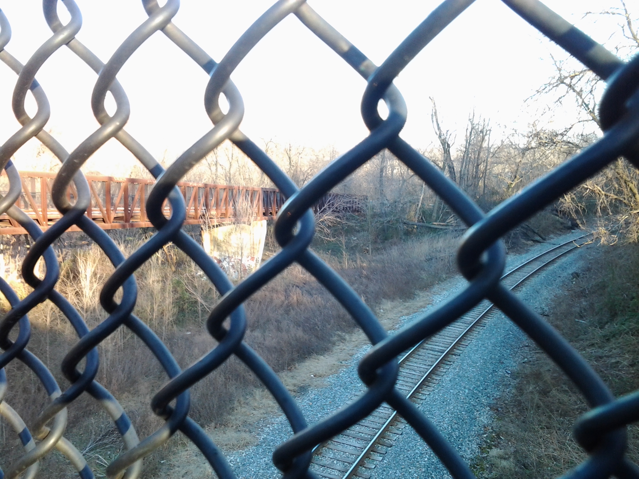 I had one of those unexpectedly busy days, literally wall-to-wall meetings since allegedly none of us have anything to do on Fridays, and I woke up already frustrated that I wouldn’t get to ride my bicycle. If you know me, or even if you don’t, you can probably guess that not riding my bike makes me a grouchy, and no bike ride on a sunny Friday afternoon? That wouldn’t be pretty. So after getting my reading and writing done in the morning, I strapped the bike onto my car and drove to campus so I could ride my bike home. Four meetings later and it was finally a real Friday. I strapped my bag onto my bike and my feet onto the pedals and zipped through Arbutus and over to the Gwynns Falls Trail for a ride. After dodging cars for a few miles, the trail was a huge relief, and it felt so good to just breeze down the hill. I stopped on a bridge to snap this picture through the chain link fence of railroad tracks and the continuing trail, watched some cranes move scrap metal from one pile to another, passed under leafless boughs, wondered about spring, said my hellos to the jogger who ignored me and dog walkers who didn’t, and ended up back at Carroll Park before peeling off to Federal Hill to meet V. and A. for a beer and dinner out. The week finally caught up with me, so I caught a ride home with V. with hopes for a sunny Saturday so I can take the bike out for more.