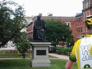 It was another scorching and humid day in Baltimore, and I spent most of it working and reading in front of the window ac unit and wondering if this is an unseasonable heat wave or if it’s just going to be this hot for the next five months. To be honest, I didn’t exactly feel like going out on a bike in this weather, but I best get used to it, or it will be a long summer off the bike and whining. (And yes, I know I bicycled daily through multiple New Orleans summers, but that doesn’t make this less hot. And yes, I know I grew up in Idaho, but I haven’t lived there in almost 20 years, and I still get cold in cold weather.) I took the Surly down the hill and against Beryl’s fingertips blowing hard on our way to Patterson Park, where the drinking fountain was out of order. Not cool, man. Then I biked around, panting, until I hit the shops at Brewer’s Hill, I think it is~the sandwich shop has mad air conditioning and unsweetened iced tea! After my break I headed home. Cloud cover was rolling in, and that made the ride back exceedingly more pleasant. I stopped at the stop sign at Potomac & Fait and snapped this picture of the same house after house after house; this block needs some serious tree action to stay reasonable during the summer. That house in the middle has built a deck on top~now we’re talking. I hope they can install one of those misting fans up there. Pedal, pedal, pedal, and then I was home. Sometimes a ride is all about the weather.