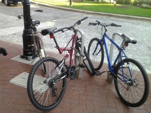 Today’s ride took me downtown to Harbor East, where I locked up my bike to one of the few spaces available–never enough bike racks, for sure. I did a quick turn at the gym and the grocery, and then I got back on my bike to head up the hill. I snapped this picture of a couple of bikes crowding up the racks. That red one is always there. I mean always. Continue reading
