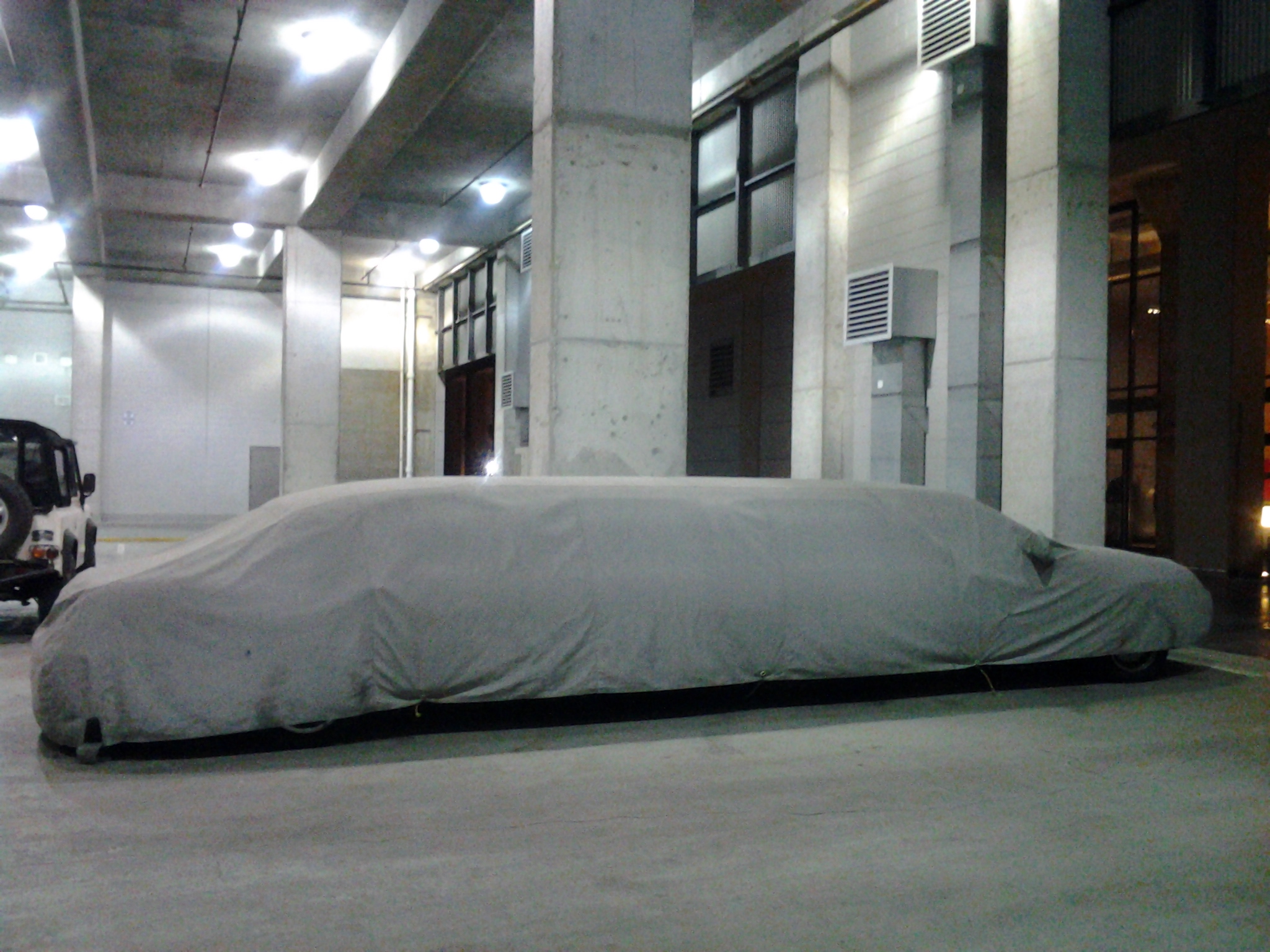 A Limousine Under Wraps in a Silo Point Parking Garage