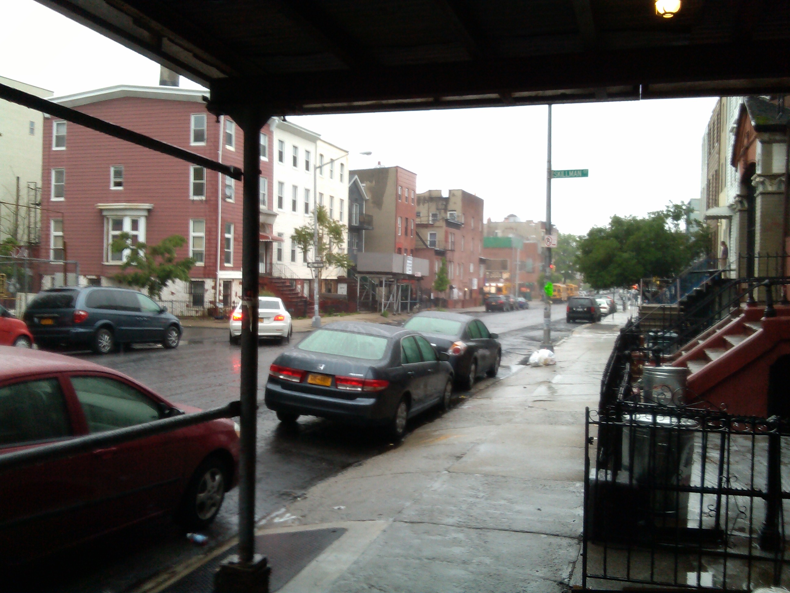 Standing Under Scaffolding in the Rain at Franklin & Lafayette in Bed-Stuy