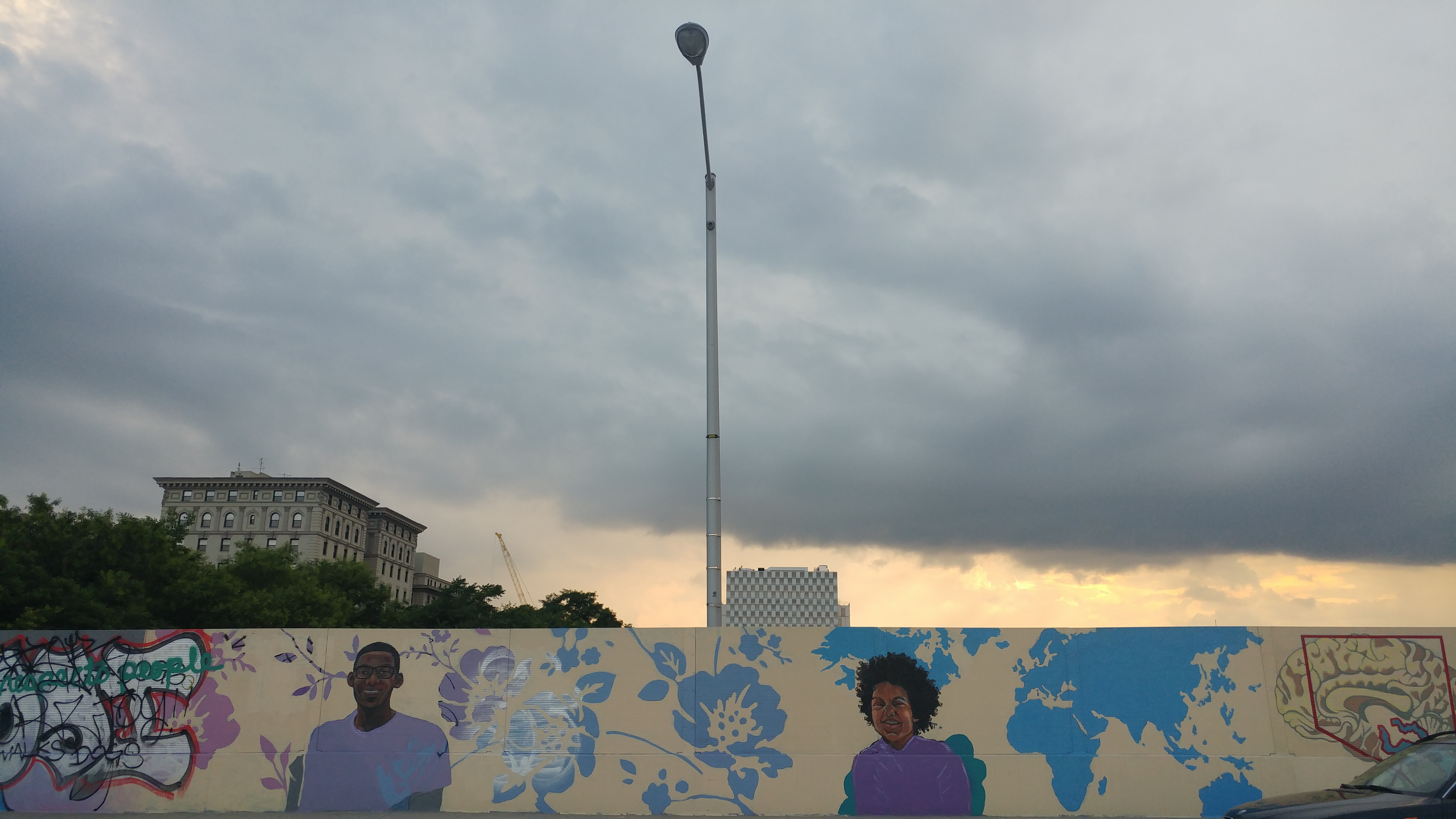I’m still riding my bike around, because that’s how I get around, but we are entering the hot and humid days of summer when rides get considerably less pleasant. It’s like riding your bike in somebody’s mouth. Or pedaling through hot pea soup. Or something else similarly hot and wet and yuck. But here we are, acclimating to another hot summer in Baltimore, happy to get a ride in most days to get from place to place. I snapped this picture on my way home on Friday. The sky was all layers of cloud and threats that didn’t come true.