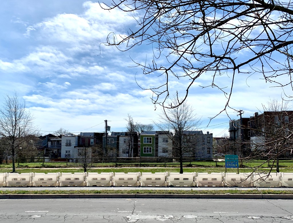 I rode around with no real destination, taking turns when I wanted to, looking to see if I could see what COVID-19 looks like here, but it just looked like a spring Friday afternoon–flower trees like the ones in this picture blooming, people out strolling, small crowds near the doors of corner stores, people sitting on their stoops. I said my how you doin’s, got the nods back, and one guy yelled after me, “Hey, is it bike party?” I yelled back, “Personal bike party! Just me on my bike!” White people riding bikes over here likely mostly only happens when it’s Bike Party.