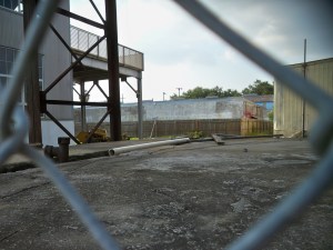 I was so worn out yesterday that I went to sleep far in advance of my summer bedtime, and still I woke up exhausted. I spent most of my day waiting to go to sleep, except for an interview with J. for his documentary project (I committed to film my strong opinion that democracy rules, and if you really read our Constitution and Bill of Rights, it’ll blow you away). I fully expected to stay off the bike, but once I got out on it, it was just good to pedal. I can’t believe that after riding a bike every day for years, it still never fails to lift my mood. I did a spin around the Bywater–man, I love some bike infrastructure–and stopped to visit L. and S., two dogs, and a passel of mosquitoes in L.’s backyard. I snapped this picture, dark as it is, of a blighted building over the fence. That’s New Orleans–there are signs of decay and blight over the fences, but on the other side is somebody’s backyard with dogs and projects and picnic tables. Yep, you’ve got to keep your eyes peeled.