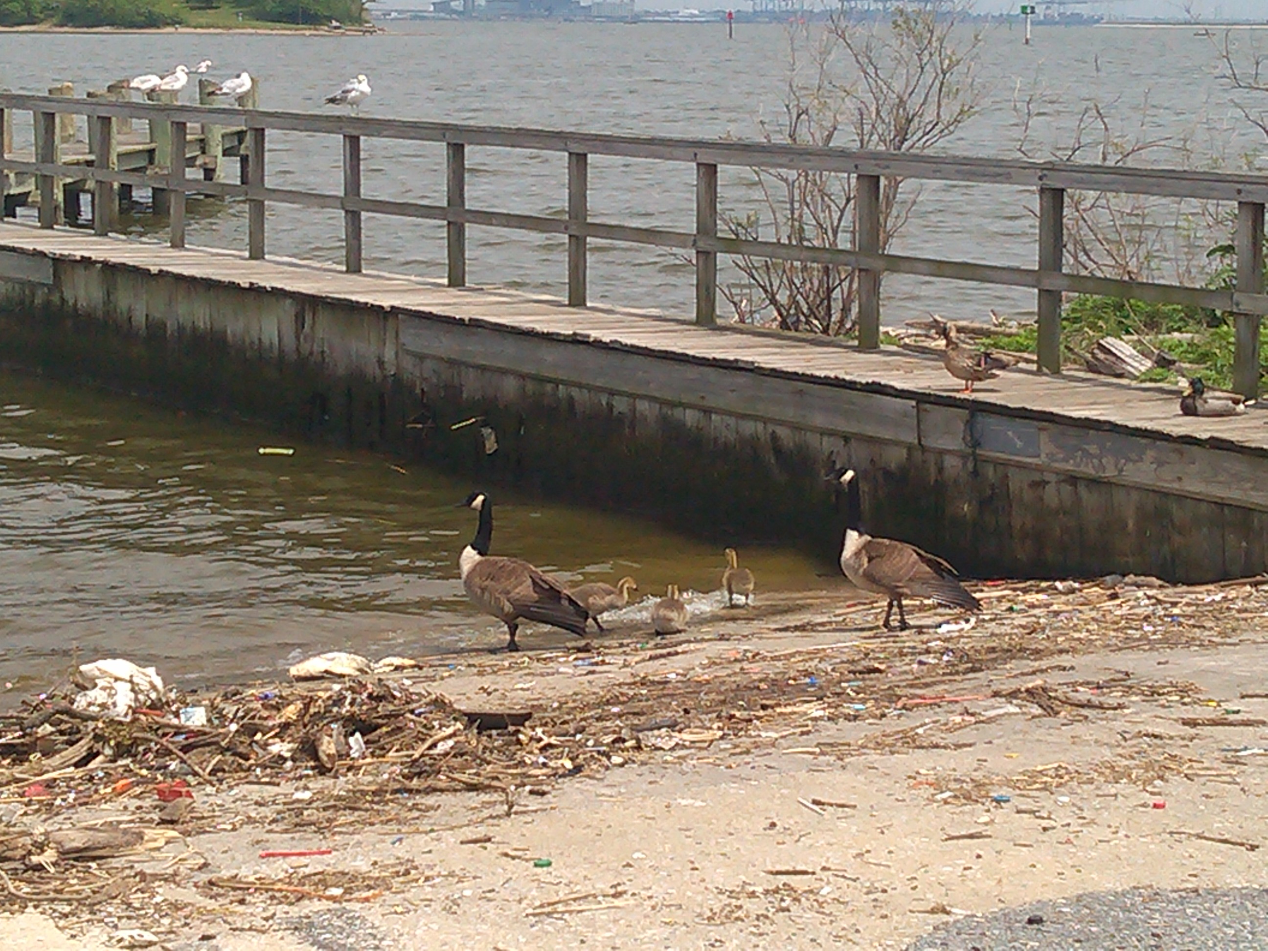 Geese and Oil Drums on the Water in Canton at East & Boston
