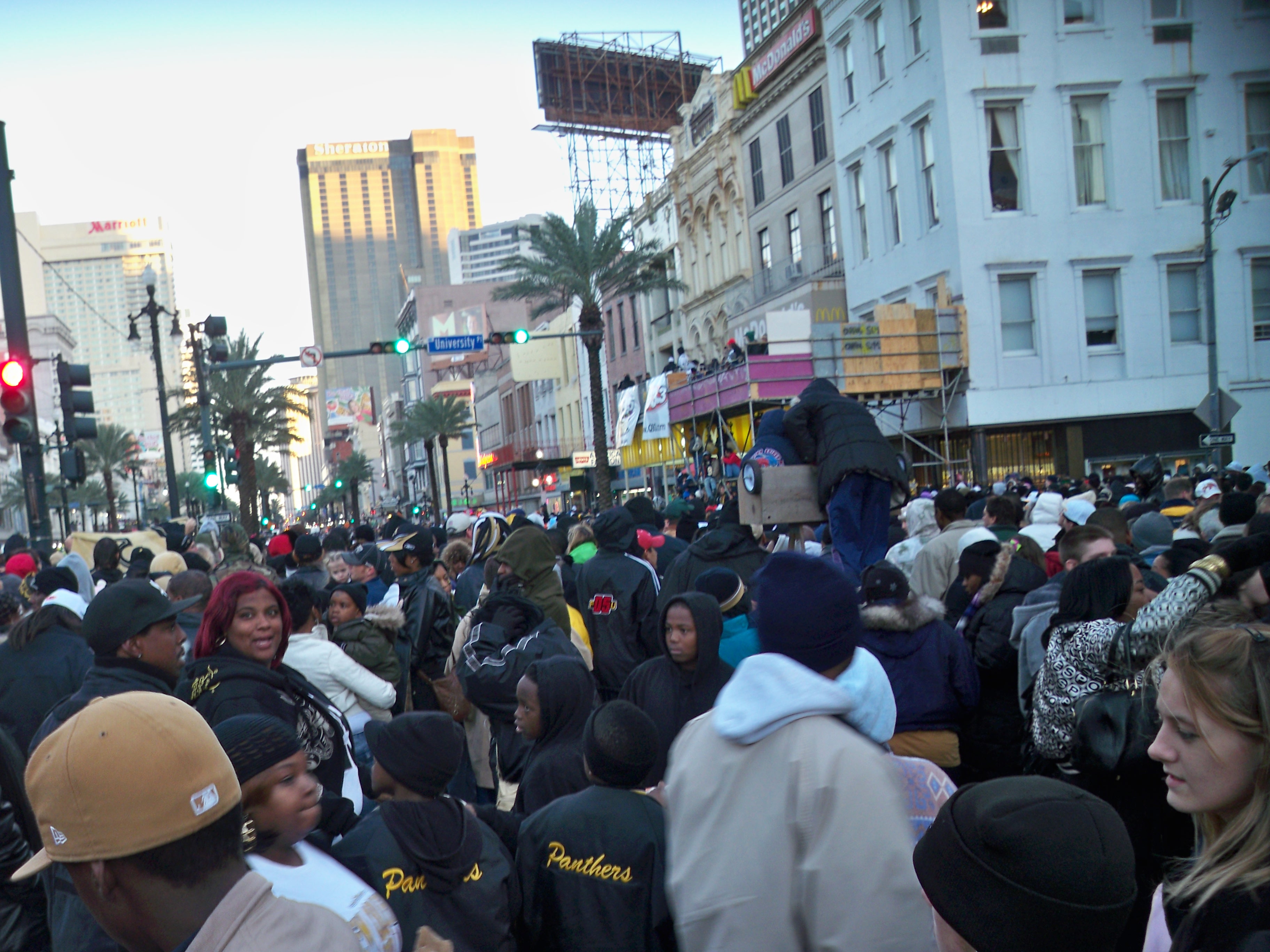 Crowds Gathering at Canal and Burgundy for the Saints Parade