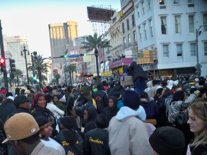 Grabbing for Beads at the NFL Kickoff Parade at Poydras & Tchoupitoulas