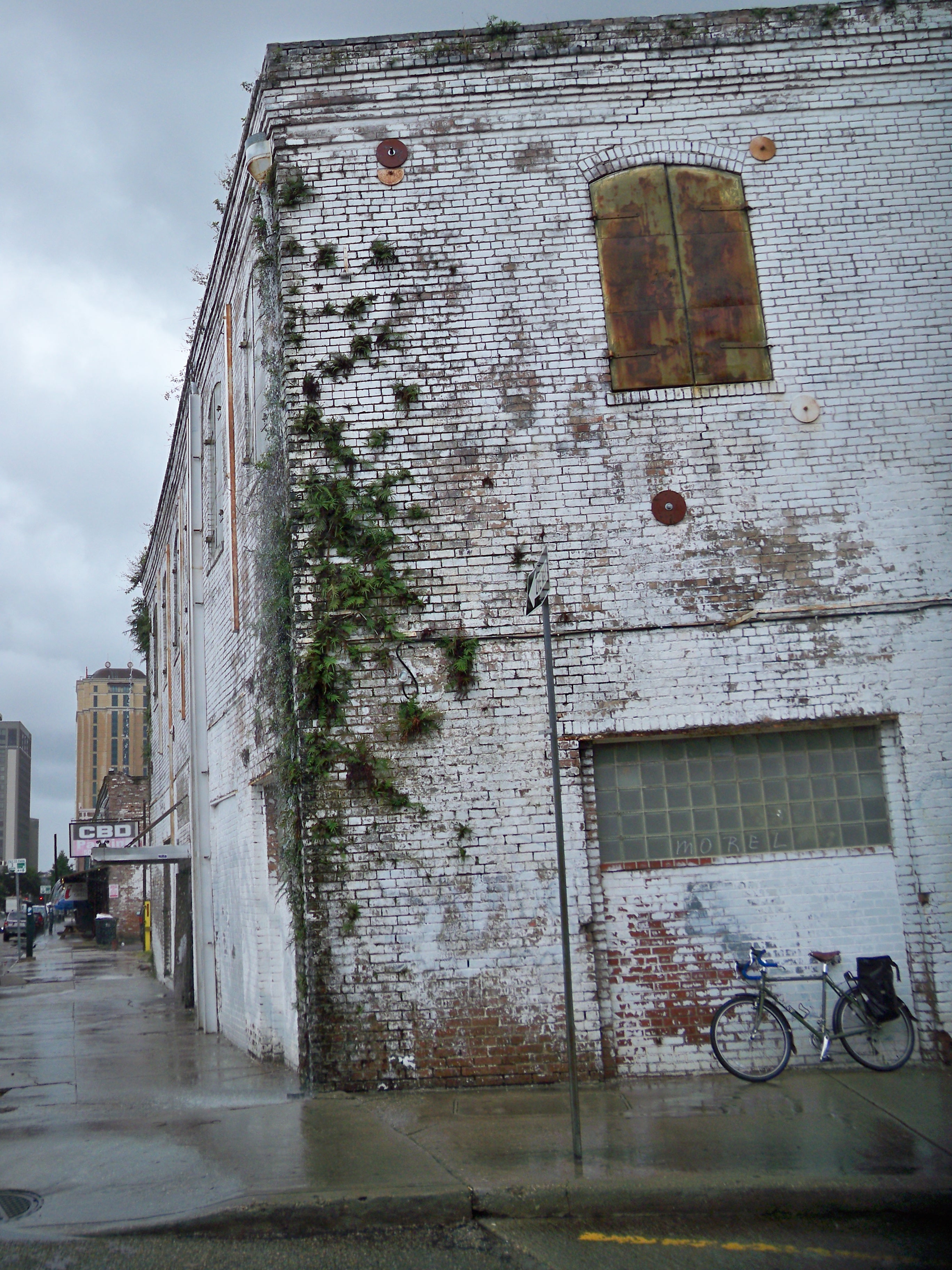 I finished up a project I’ve been working on for some months today, so as a reward, I gave myself the afternoon to ride my bike around, drop into a National Park Visitor’s Center–you know, the usual Friday afternoon of a National Park/bicycle obsessed academic. I put my passport in my pannier and thought to toss a poncho in there, just in case. Well, I made it to the Pontchartrain Expressway underpass when the sky just opened up. Sigh. I waited for awhile underneath the expressway, hoping it was one of those momentary summer thunderstorms. I impatiently put on my bright yellow poncho, thinking I could make it to the Quarter, but man, that kind of rain, when you wear glasses? Impossible. I hung out under an overhang for awhile longer until suddenly the rain was just gone. Weather in this place is nuts. I continued on my way and took a left at N. Peters to shoot down to Decatur. I stopped to take a picture of this white brick building on the corner of N. Peters and St. Joseph. You can’t tell in this picture, but there’s a veritable waterfall streaming from the top of the building where pipes are funneling water away from the rooftop. Continue reading