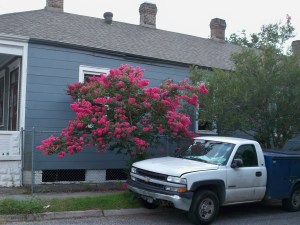 My legs were kind of wilty today after yesterday’s ride so I kept my ride to the commute to campus for class and then back home. I pedaled along, noticing the lushness that all this heat and humidity give us. Back at the beginning of spring we got the brilliant azaleas and that insidious cat’s claw and the cloying jasmine. I always feel a little sad as the heat comes on because I know it’s the end of that first wild color, but lately as I ride around I’ve been noticing the outrageous fuschias and purples and the sparkling bright whites of these flowering trees. Continue reading